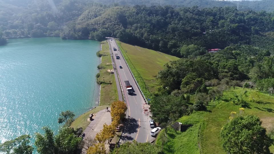 濁水溪流域日月潭水社壩俯瞰 水社壩位於日月潭西側,長約 363.63 公尺,壩頂標高 748.8 公尺,壩高為 30.3 公尺,心壁採混凝土中心牆,並於中心牆前後設置黏土壁;壩頂寬6.97公尺並舖設瀝青混凝土工供通行之用。 圖號:0106253 圖片出處:日月同輝2018 網路連結: 更新日期:2022/06/06 點選次數; 421 本商品上架日期:2022年06月06日週一.