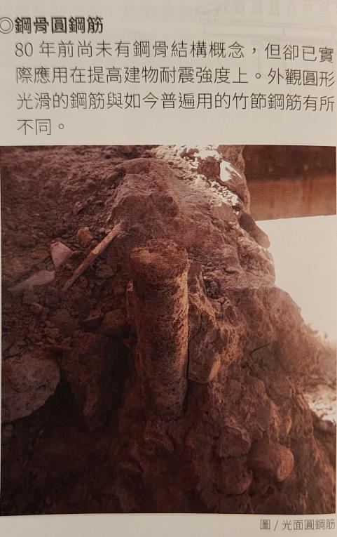 高雄市區鐵路地下化-高雄車站的演進-第三代高雄車站帝冠式建築-車站瑰寶 高雄驛有鮮明的歷史時代感,在建築設計上也有獨特的文化美感,她的裝璜設計融合大量東西方元素,既現代又傳統;建材同樣也集合當時的日本和台灣本土精華,不論是鐵道迷還是建築愛好者,都可以在這裡探訪尋寶。【圖/鋼骨圓鋼筋。80年前尚未有鋼骨結構概念,但卻已實際應用在提高建物耐震度上。外觀圓形光滑的鋼筋與如今普遍用的竹節鋼筋有所不同。】 圖號:0704024 圖片出處:交通部鐵道局 網路連結: 更新日期:2025/01/03 點選次數; 123 本商品上架日期:2025年01月03日週五.