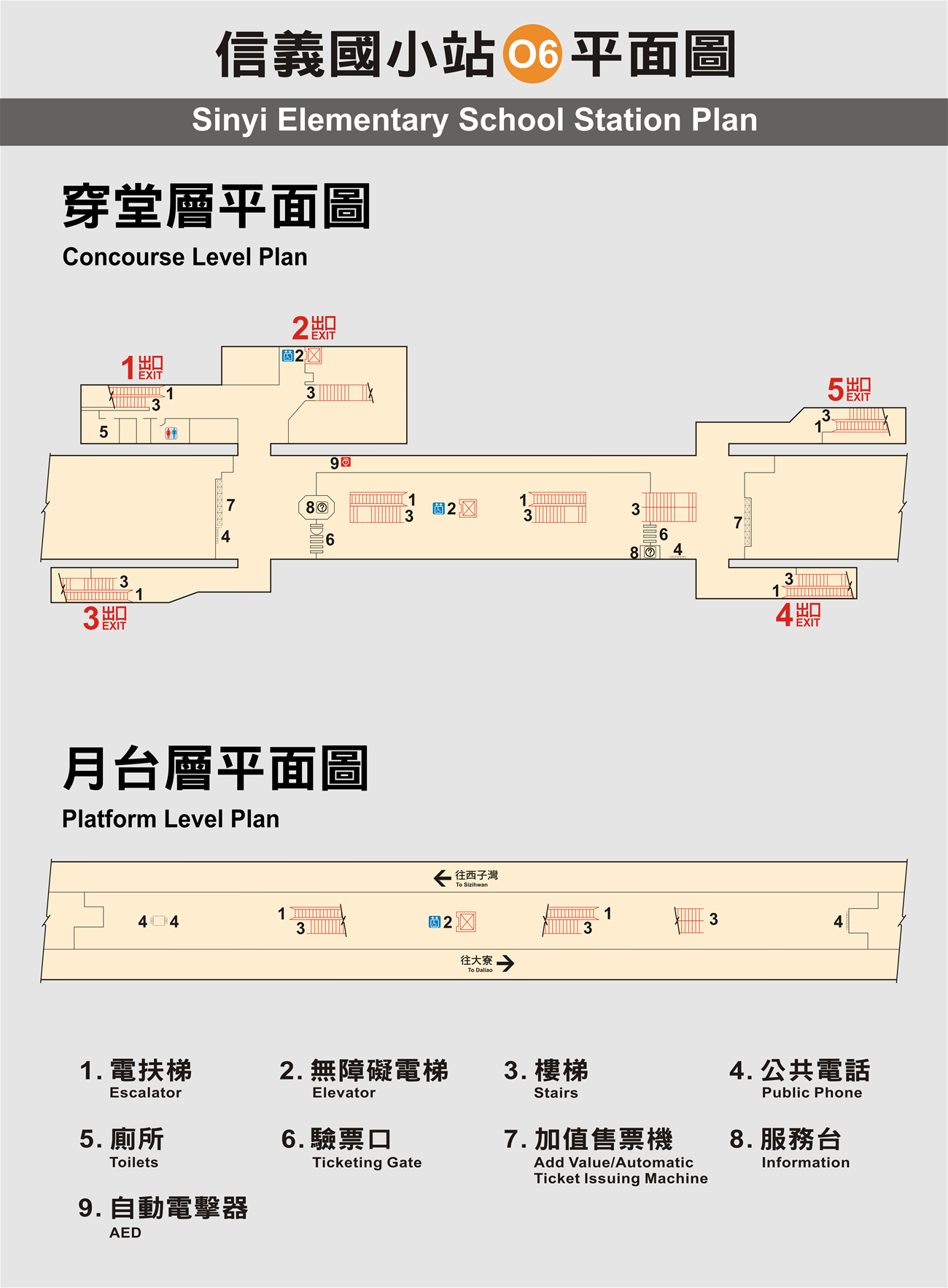 高雄捷運橘線沿線車站介紹-信義國小站(O6)平面圖 信義國小站為地下三層車站,設有3處出入口,地下一樓為車站大廳層,設有公共藝術『匯聚四方』,地下二樓為橘線月台層,設有一座島式月台及全高式月台門,地下三樓為預定之黃線月台層。 圖號:0810063 圖片出處:高雄捷運公司 網路連結: 更新日期:2025/01/10 點選次數; 82 本商品上架日期:2025年01月10日週五.